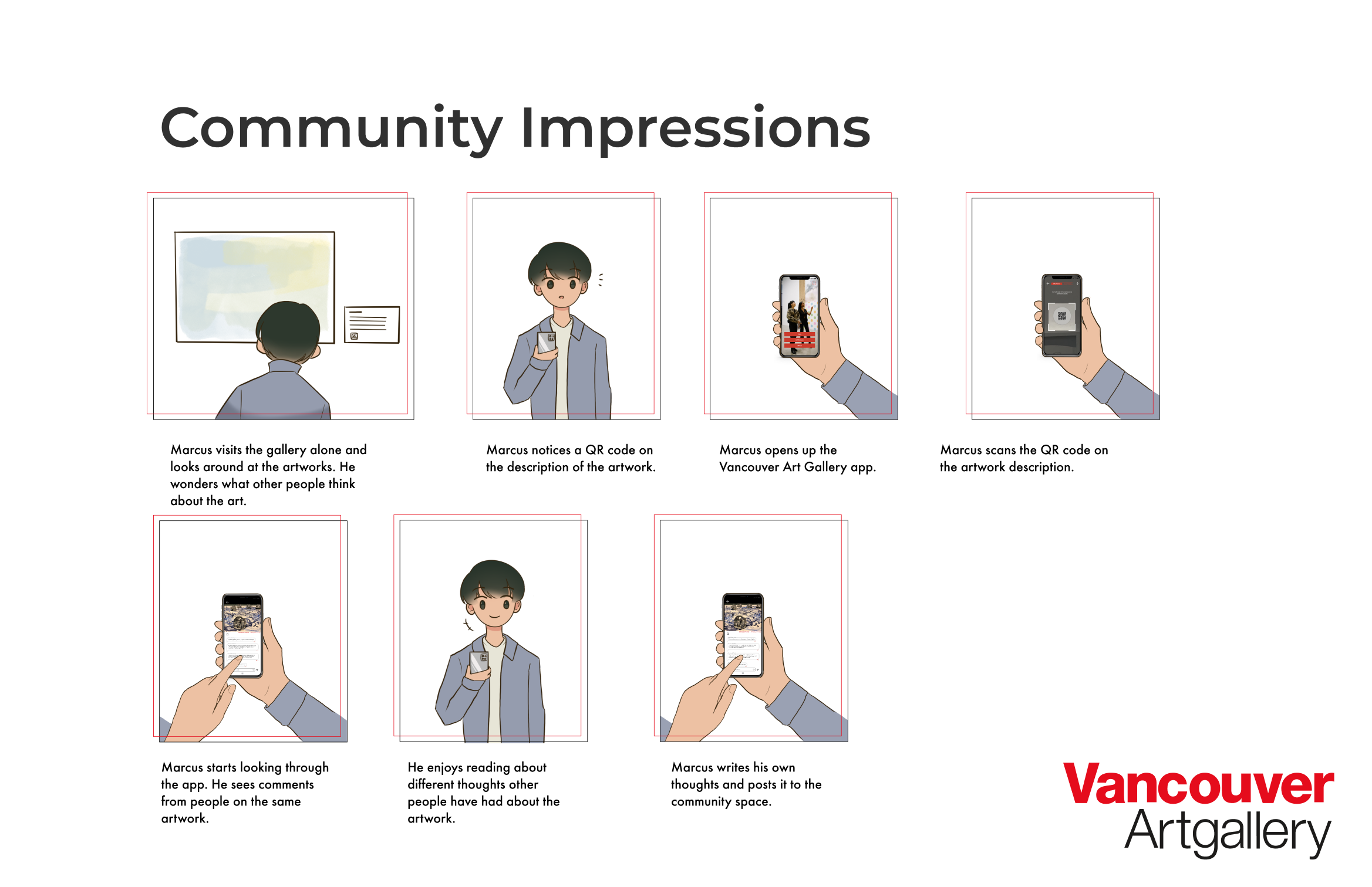 Looking back, I do believe that Community Impressions was a better fit for our problem statement. Because we received overall better feedback for Community Exhibitions, we pushed forward with it, without taking a step back and truly thinking about our design focus. This was a good learning experience to realize that we know our project the best and to be confident with our choices instead of being swayed by other opinions.